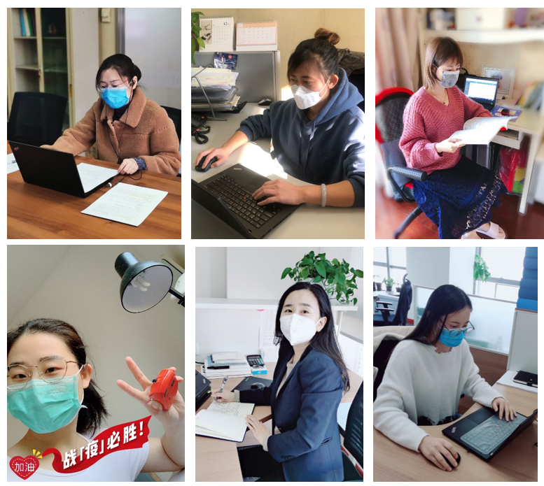 “新冠”疫情爆發(fā)以來,公司分工會(huì)和行政部作為疫情防控小組重要成員,擔(dān)負(fù)著辦公場(chǎng)所安全管理、應(yīng)急物資籌措等重要工作,工會(huì)主席陳克麗、行政部主任謝棣不定期到部門檢查復(fù)工防疫情況;行政部朱佳宇、宋雅靖每天兩次為到崗員工測(cè)量體溫,從不失約;人力資源部王蕾、中南分公司周敏一直兢兢業(yè)業(yè)的擔(dān)任“表姐”、“表妹”角色,負(fù)責(zé)統(tǒng)計(jì)公司每日各類健康報(bào)表。公司全體女員工以細(xì)致入微的工作,確保公司各項(xiàng)疫情防控措施的落實(shí)。